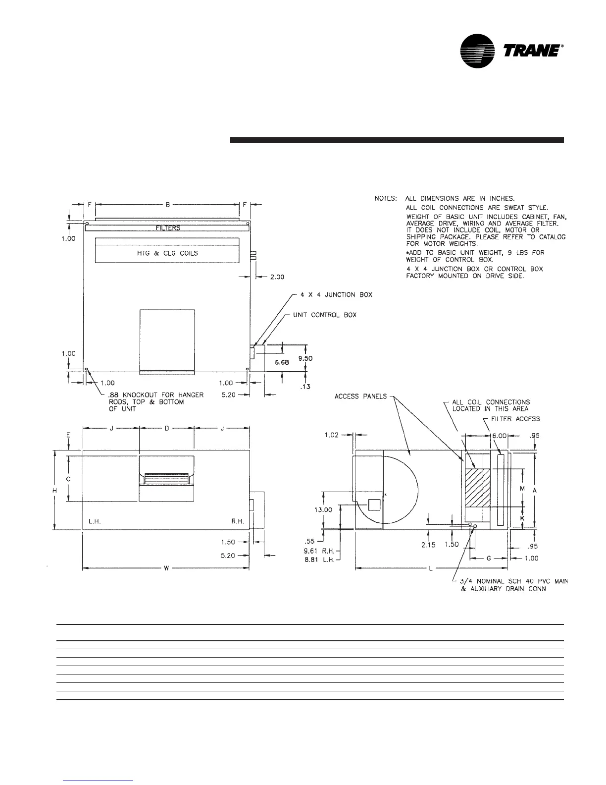 Horizontal Blower Coil Unit Dimensions and Weights, in-lbs.