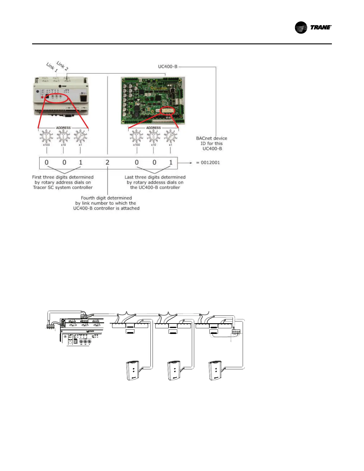 Figure 59. Example of BACnet link wiring with multiple UC400-B controllers