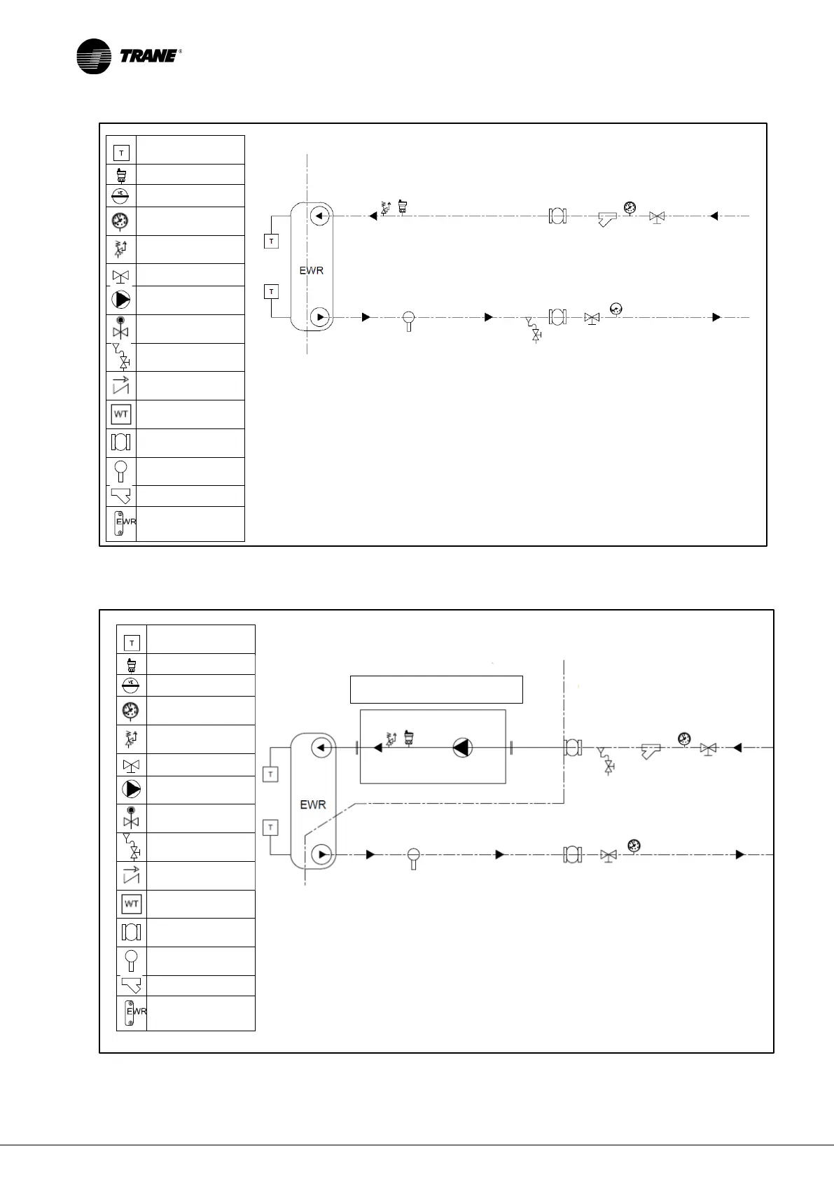 Hydraulic diagram for CCUF units and hydraulic module with 1 pump without tank