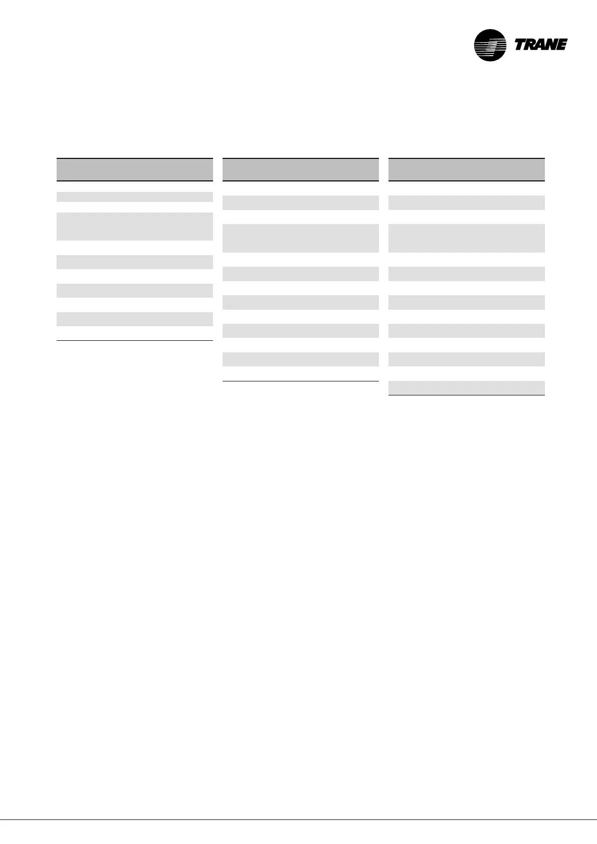 There follows a list of the recommended parts for several years’ running. Trane is at your disposal to