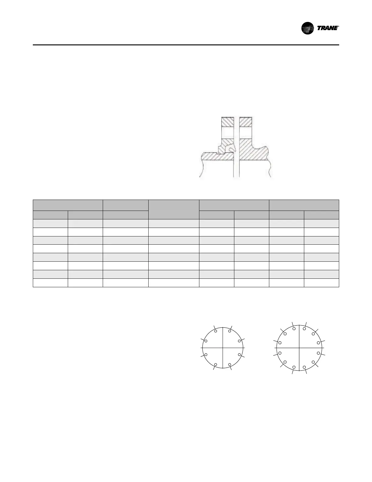 Table 12. Installation data for 150 psig (1034.2 kPaG) flange adapters (Style 741)