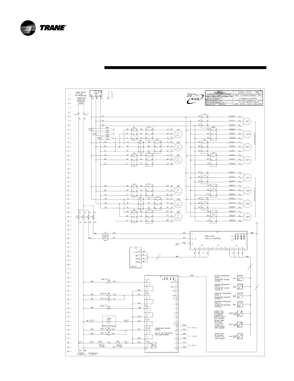 Fig. 37 - Power and command wiring diagram CGAD080C/CGAD090C - Sheet 1/2
