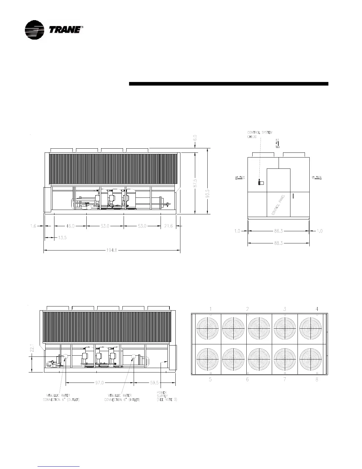 Trane CGAD020C - Fig. 23 - Unit Dimensions - CGAD 150 C; Fig. 24 - Top View of Fans; NOTES