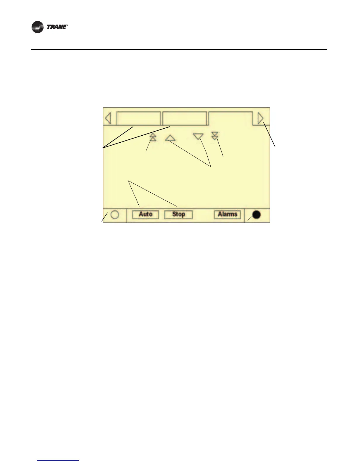 The main body of the screen is used for description text, data, setpoints, or keys (touch sensitive