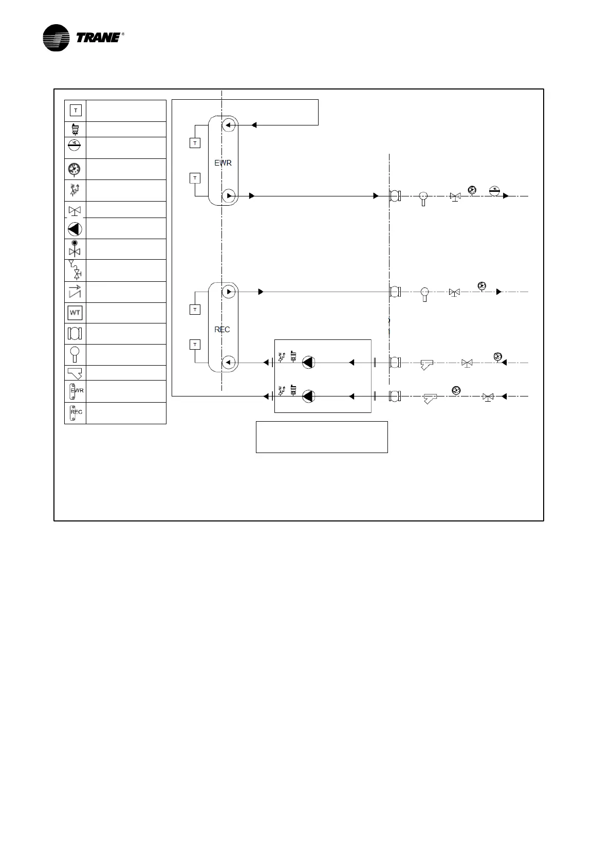 Hydraulic diagram for CGWF (SE and HE) - CXWF units and hydraulic modules with 1 pump without