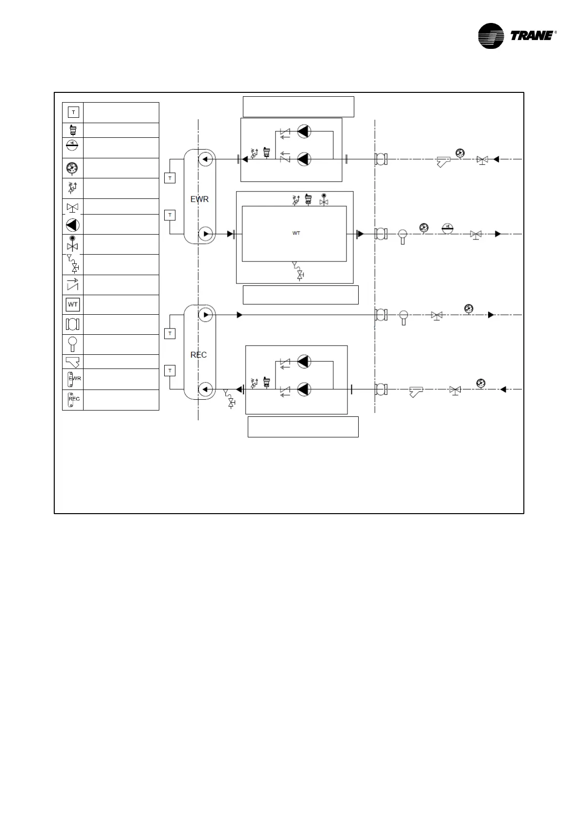 Hydraulic diagram for CGWF (SE and HE) - CXWF units and hydraulic modules with 2 pumps and tank