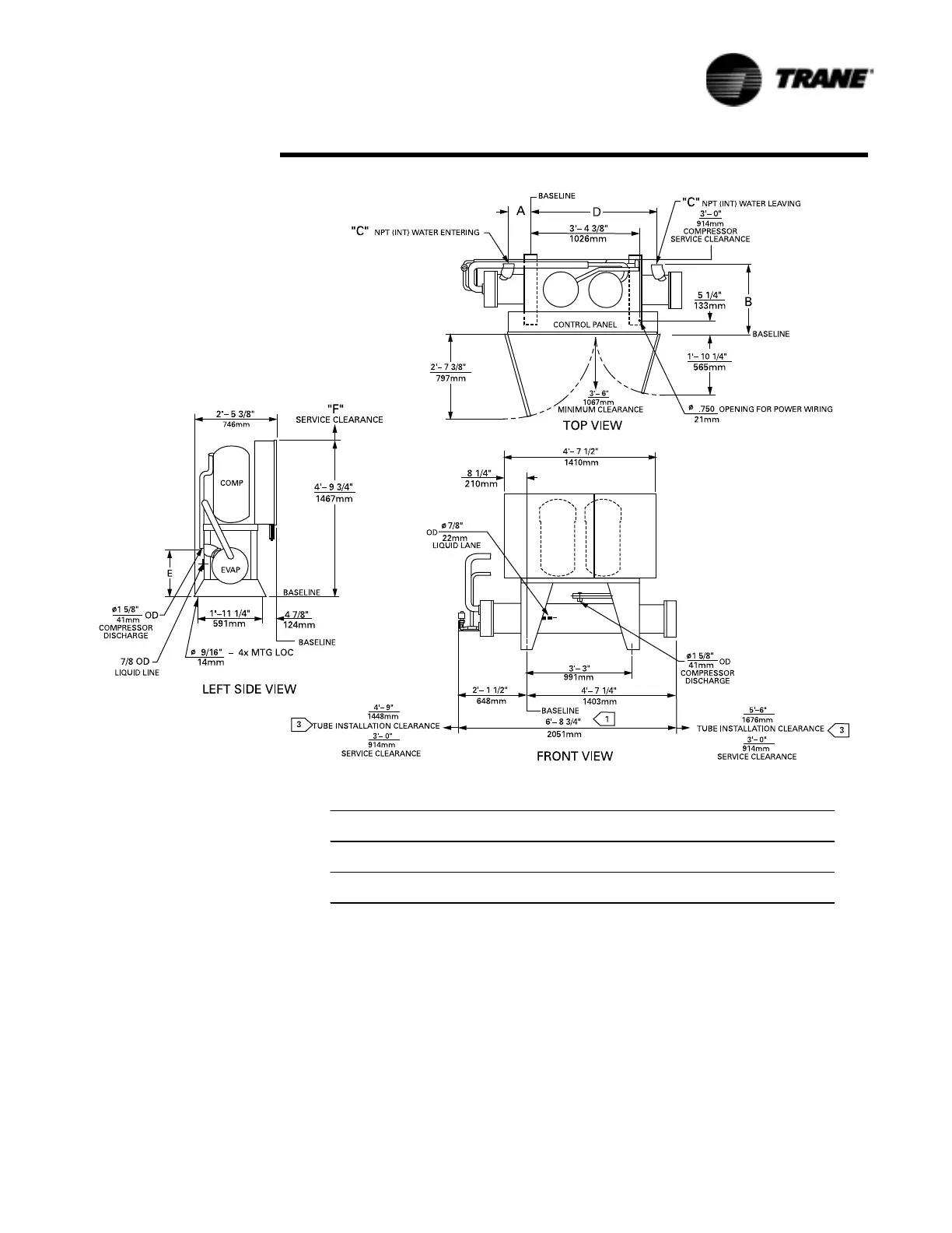 Figure 10 CCAF 20, 25 and 30 Ton Unit Dimensions, Recommended Clearances, Mounting Locations,