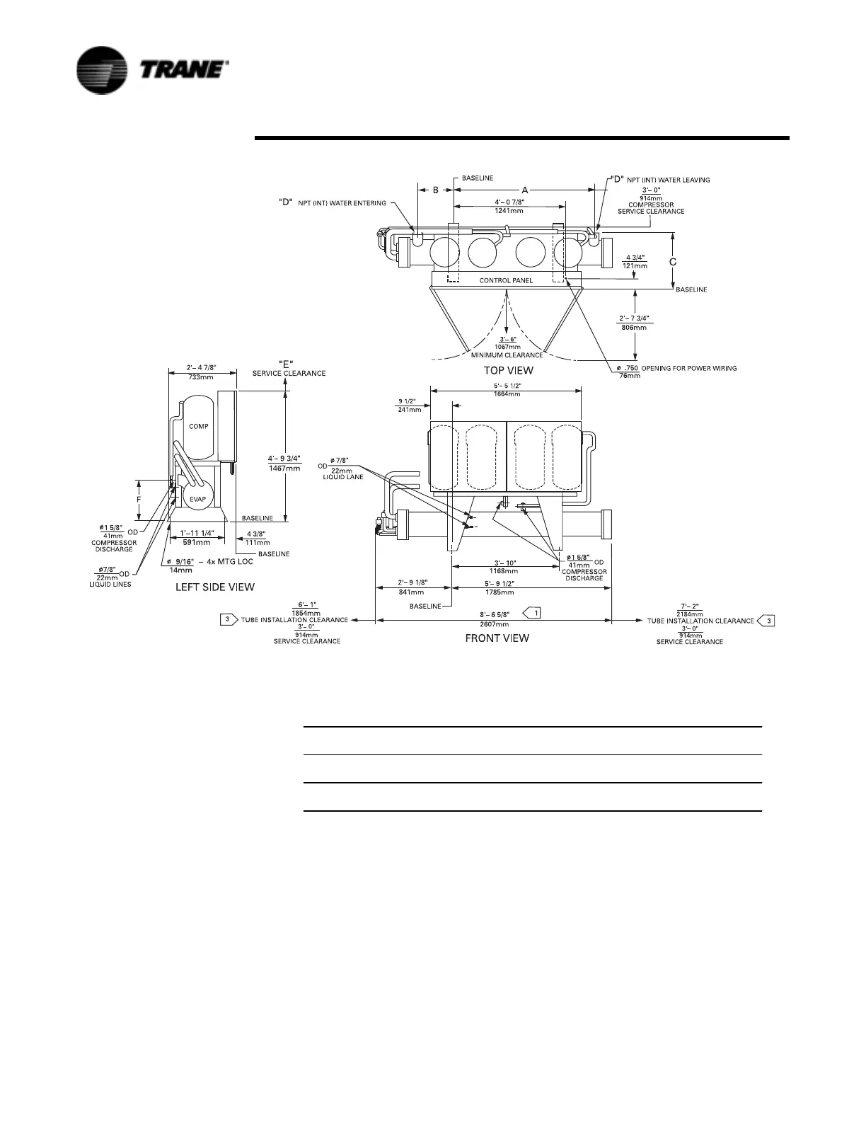 Figure 11 CCAF 40, 50 and 60 Ton Unit Dimensions, Recommended Clearances, Mounting Locations,