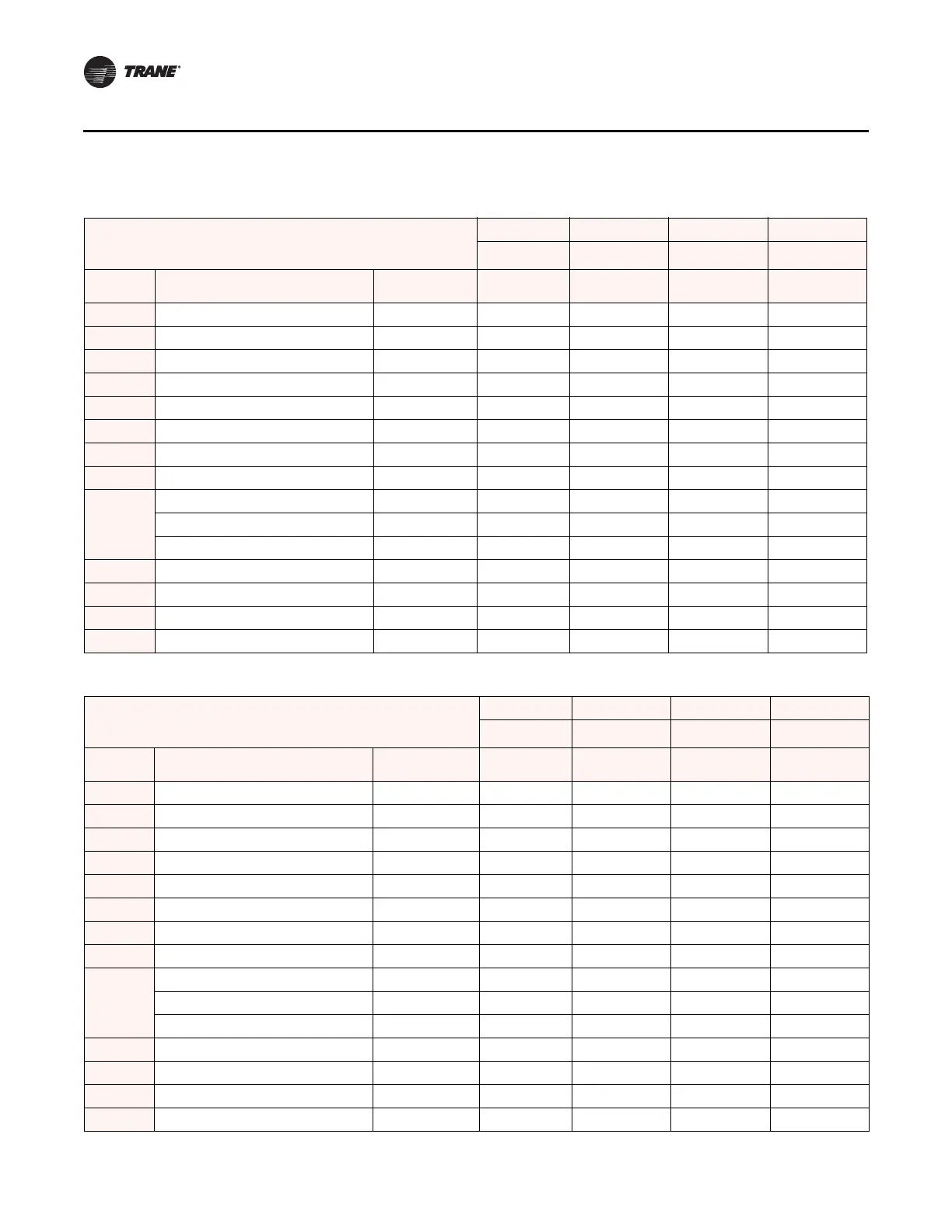 Trane Assembly Part Numbers for all Optional Model Versions of