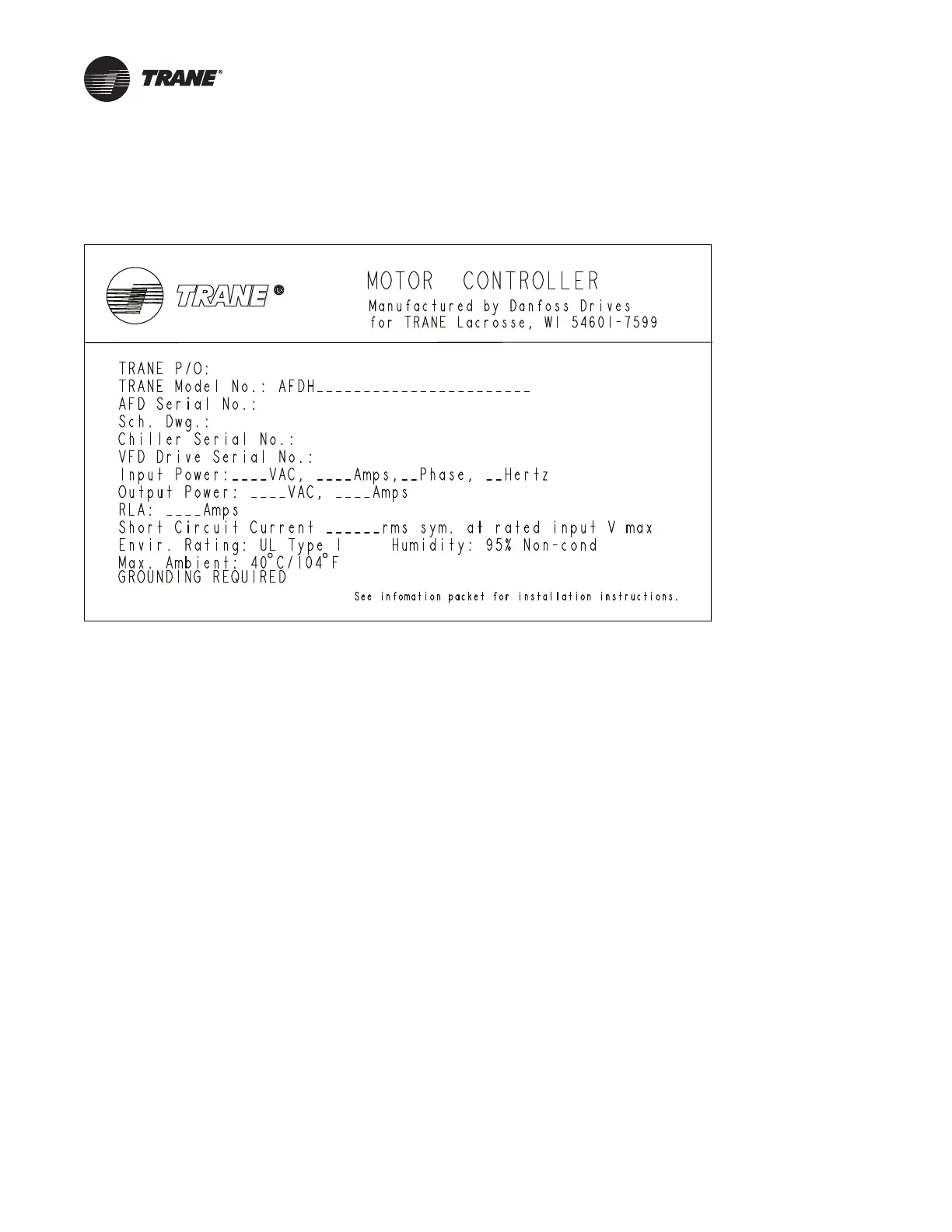 A nameplate is installed on each AFDH Air-Cooled Drive