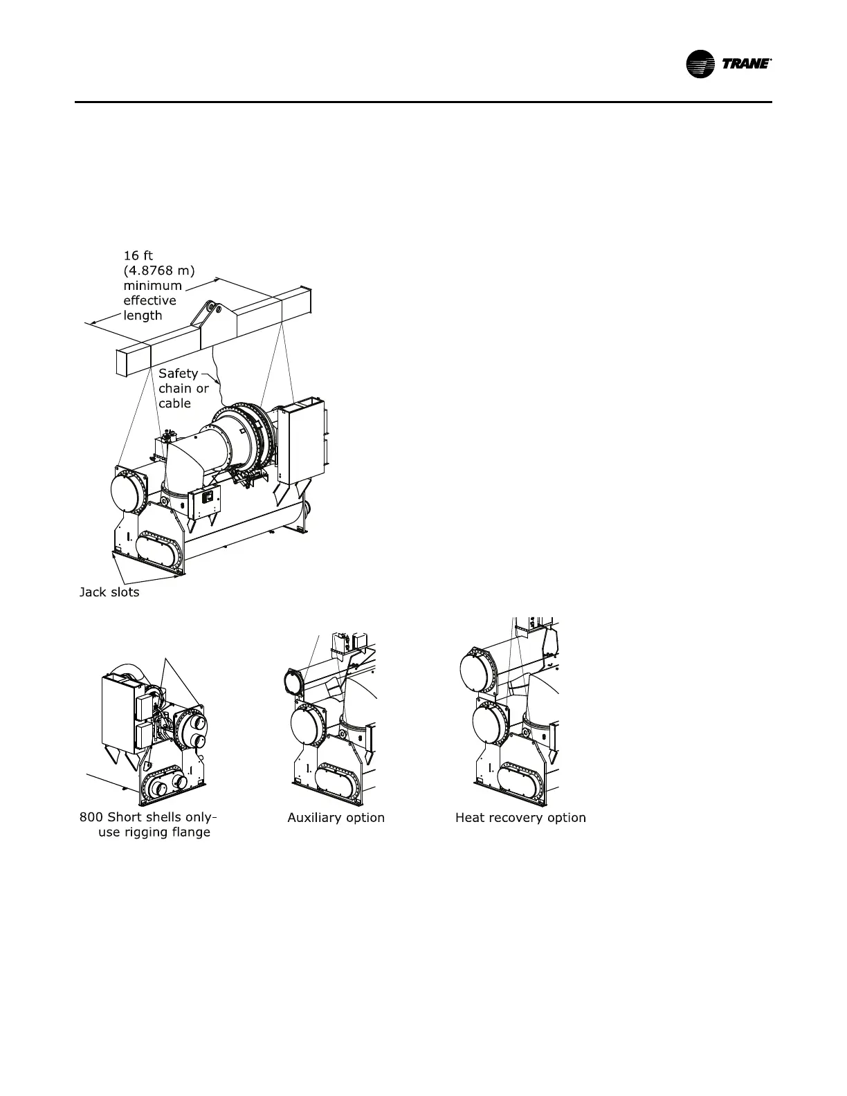 Figure 5. Typical rigging arrangements for CVHE, CVHF, and CVHG CenTraVac™™ chillers