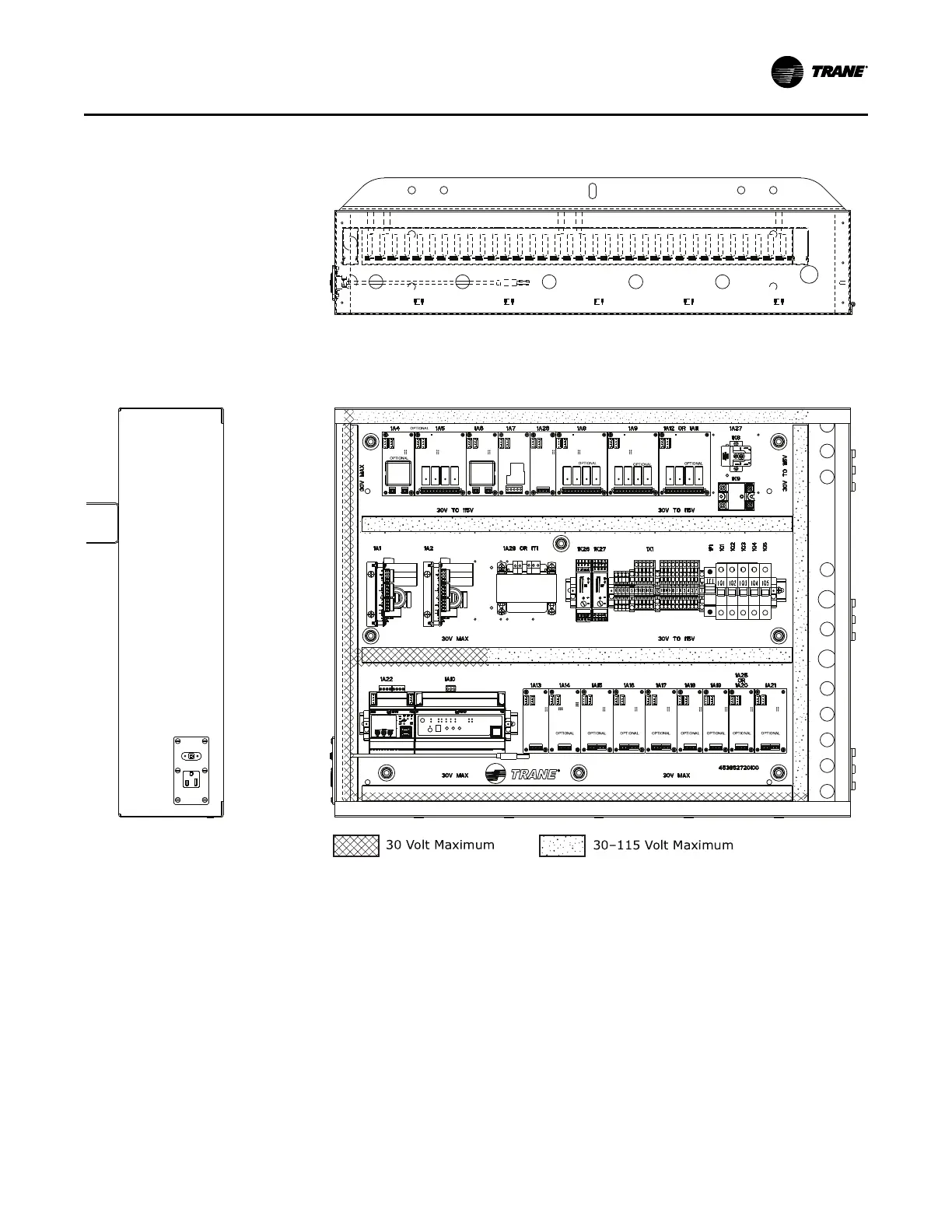 Figure 31. Standard control panel: Tracer®® AdaptiView main unit assembly (showing low voltage and higher