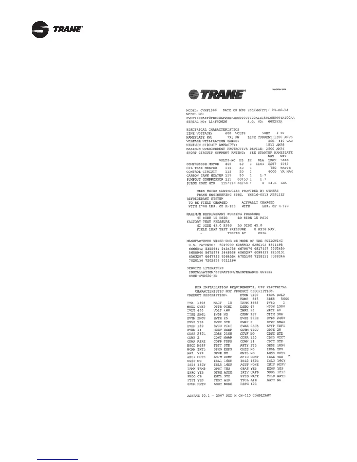 Figure 1. Typical unit nameplate (CDHF shown; CVHH