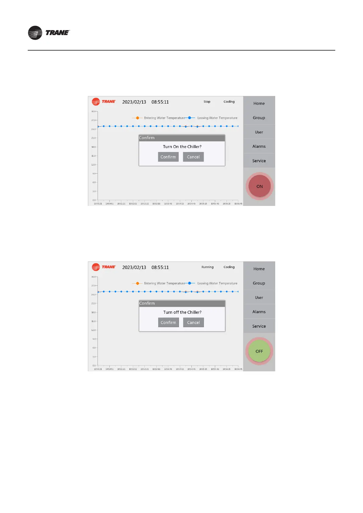 Press the OFF button at the bottom right of any page during the running status, and the conrm message box will pop up,