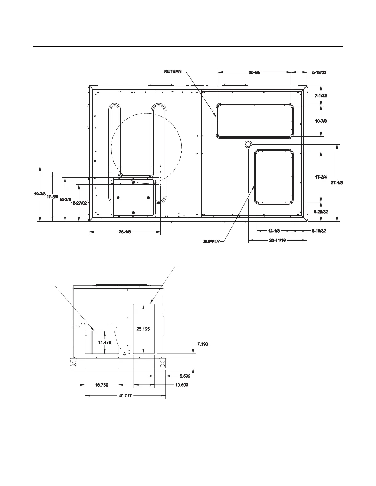 Figure 4. Cooling with optional electrical heat units — bottom view — 3–5 tons