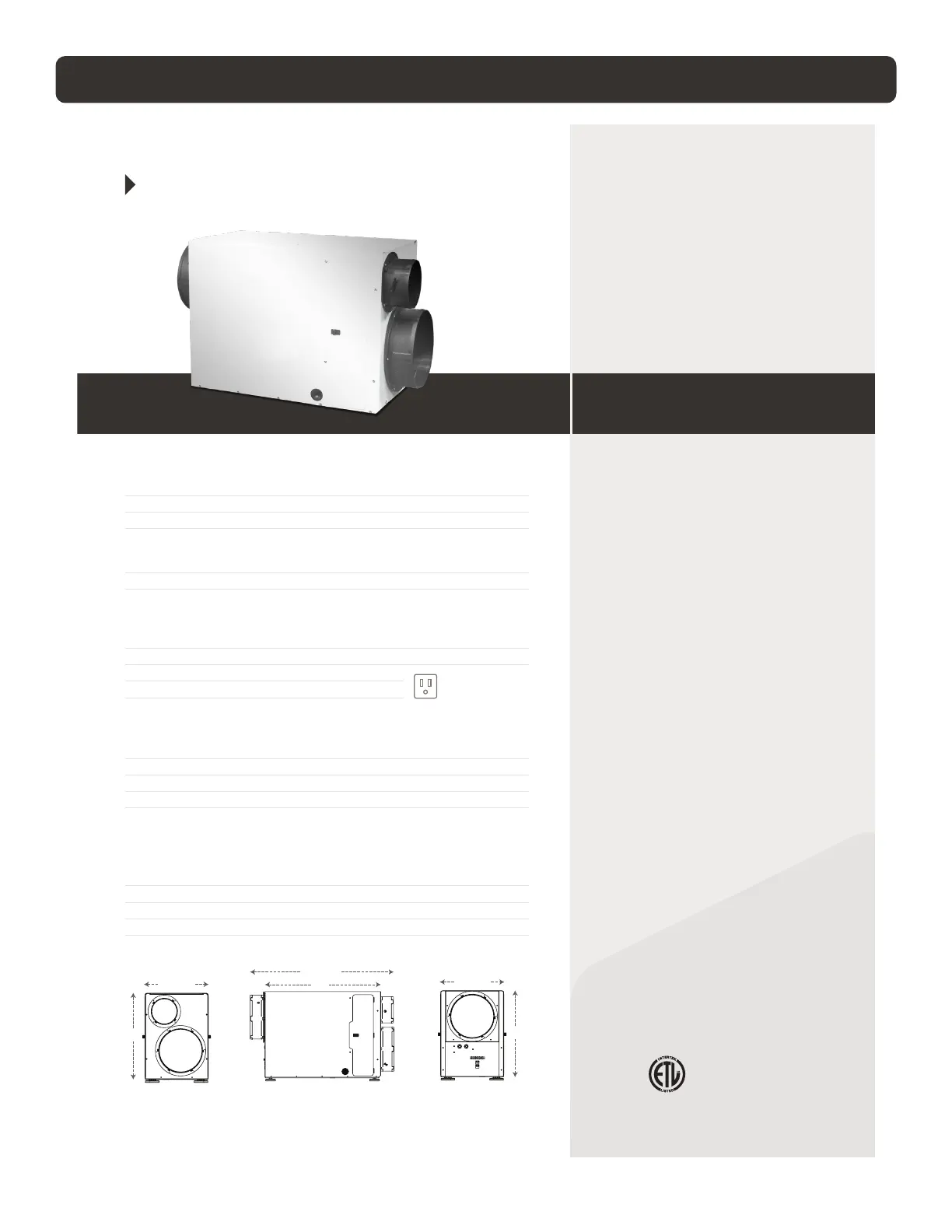 Duct Connections 6” Round Inlet, 10” Round Inlet, 10” Round Outlet