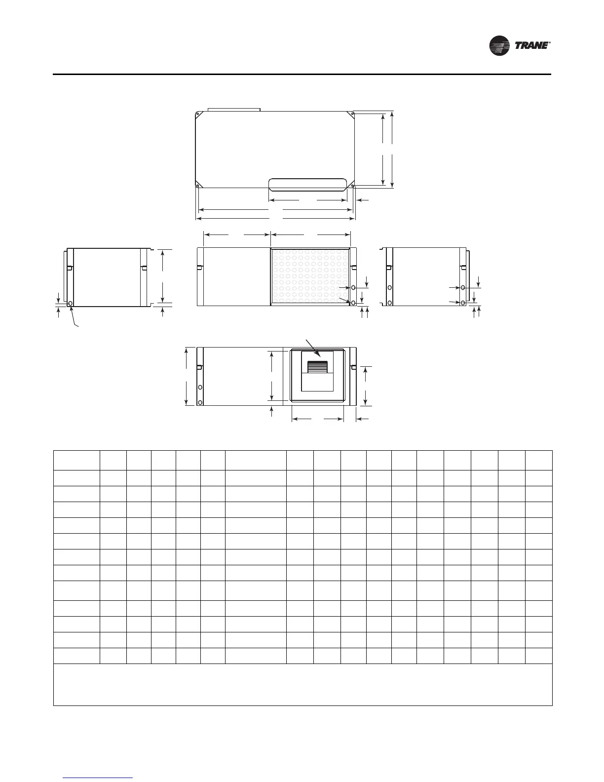 2. Clearance must be 18 in. (457 mm) for access to service. NEC requires 36 in. on the control panel side of the unit. If supply or return are not located
