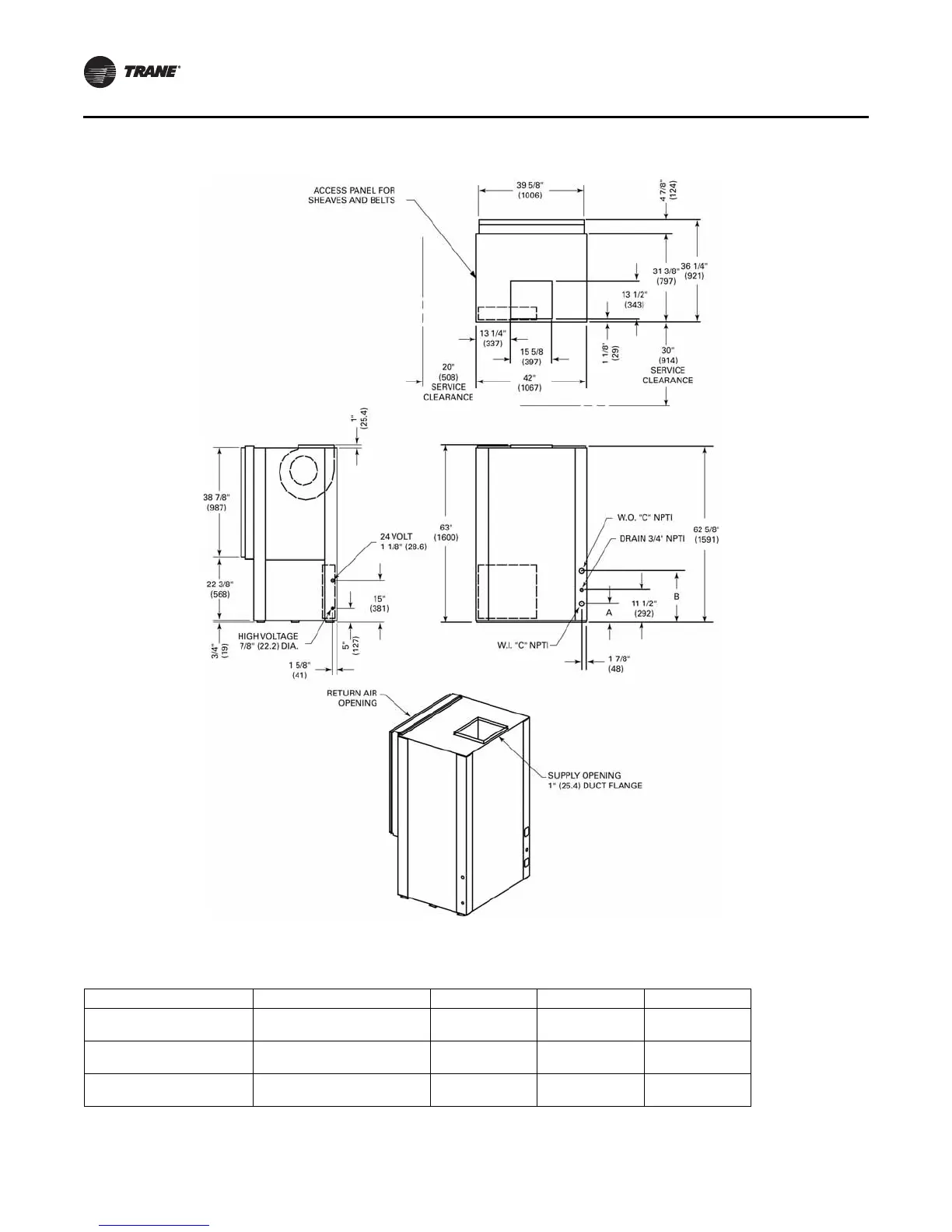 Trane EXHF - GEV 6-10 T 60 Hz; 6 and 7,5 T 50 Hz - Back Return;Top Supply