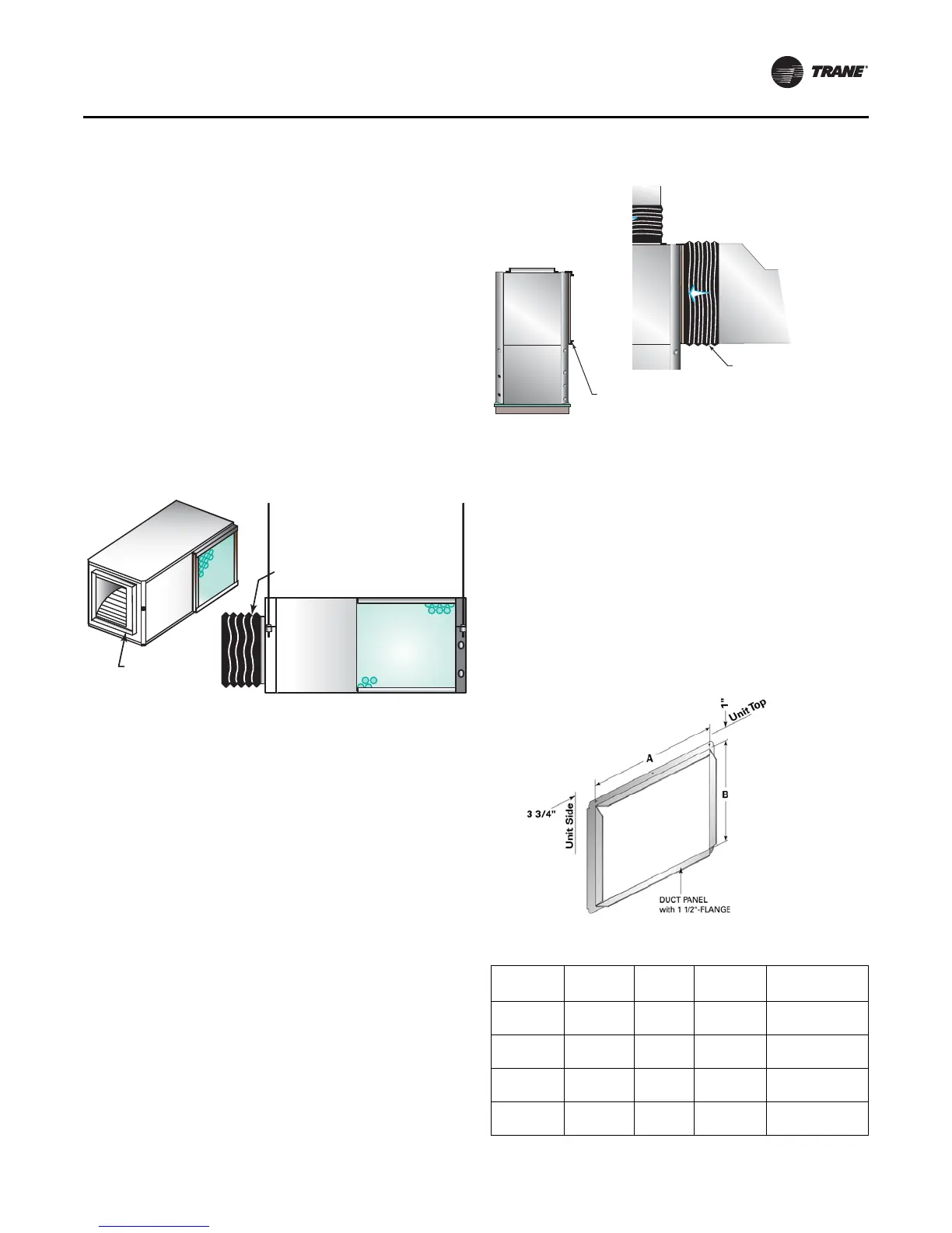 Horizontal ½-5 ton and EXHF units require duct flanges to