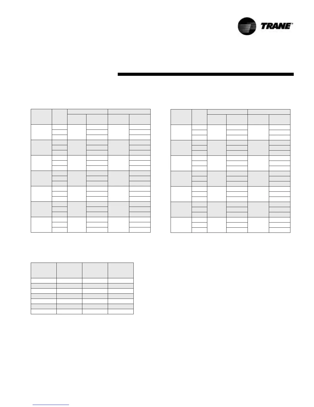 For the operating temperature drop (heating) and rise (cooling), refer to Table OP1 and OP2 for the proper water tempera-