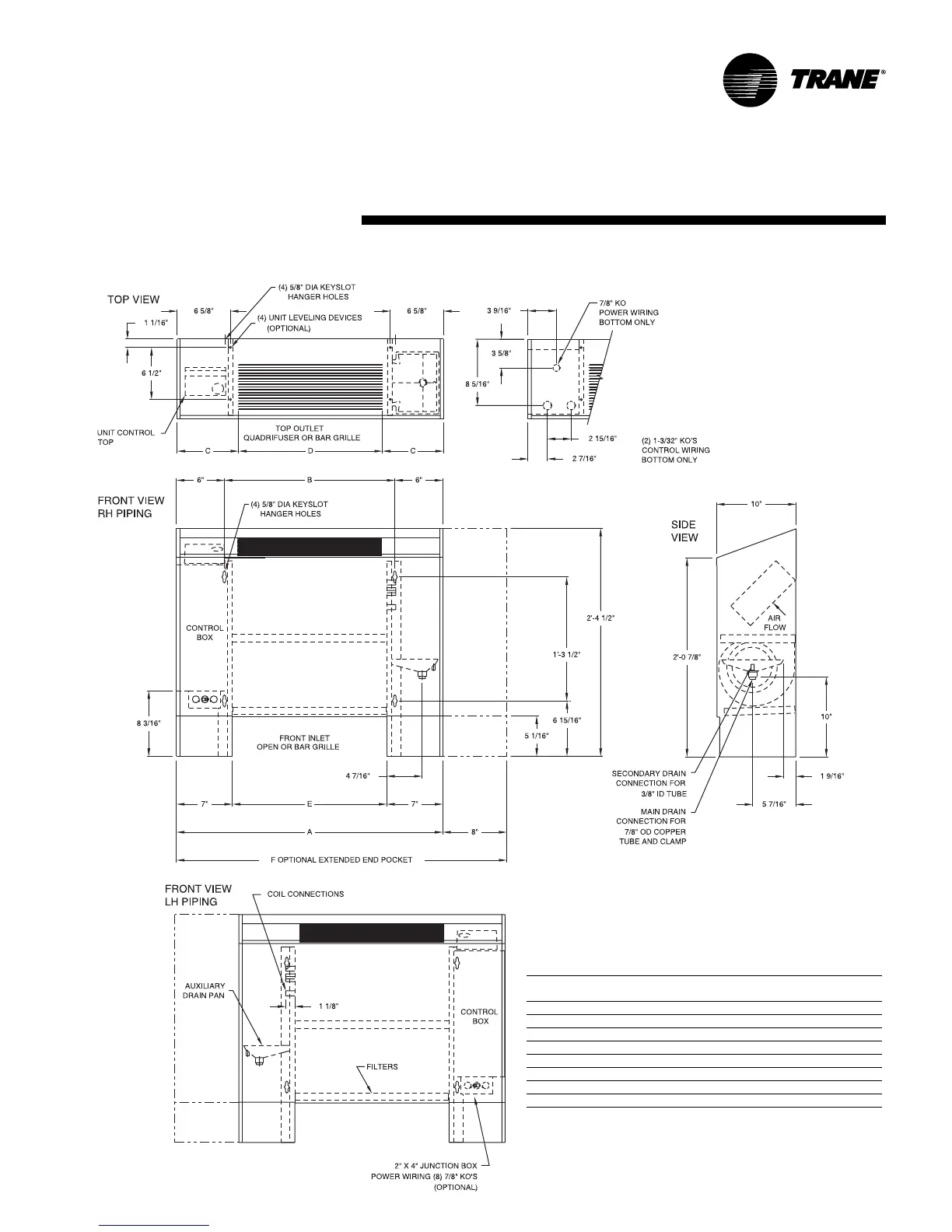 3. All duct collar dimensions are to the outside of the collar.