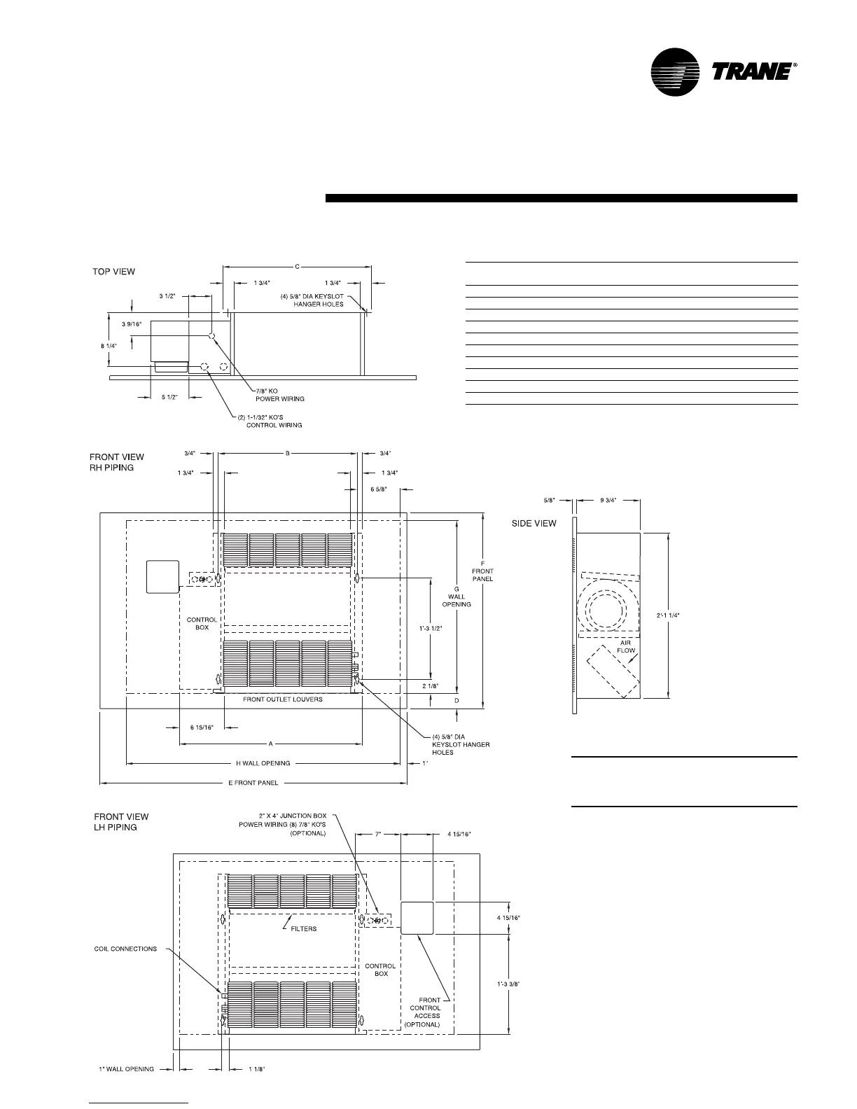Inverted vertical recessed unit dimensions & weights, in-lbs.