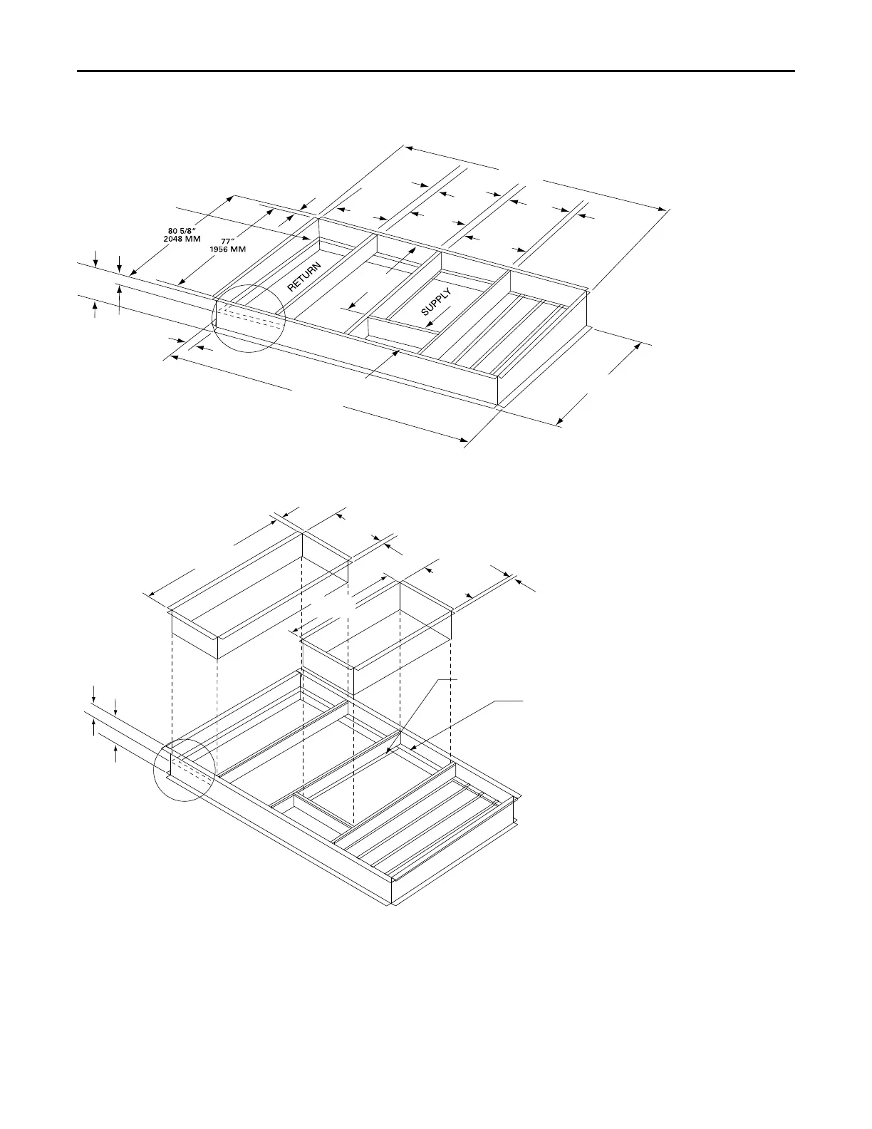 • DUCT FLANGES MOUNT 7-7/16” DOWN INSIDE THE CURB ON THE 1-1½” CURB FLANGES.