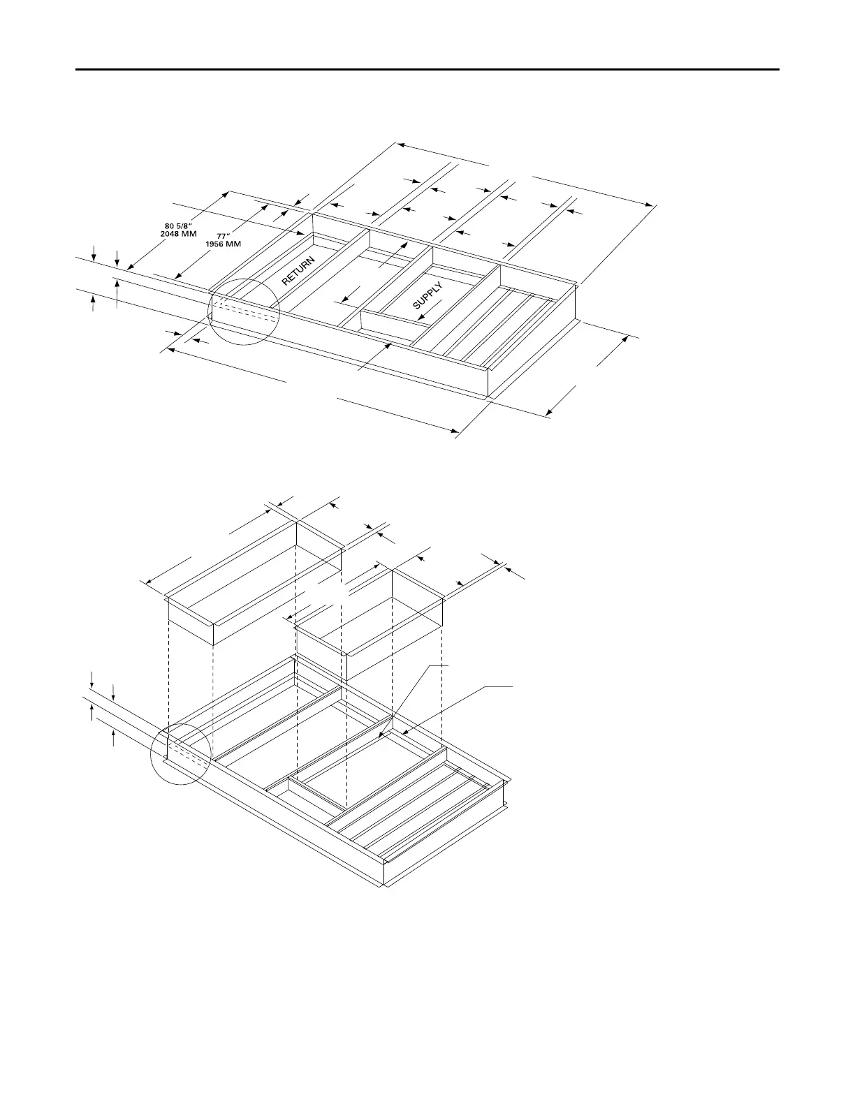 Figure 7. Cooling with optional electrical heat downflow duct connections—field fabricated