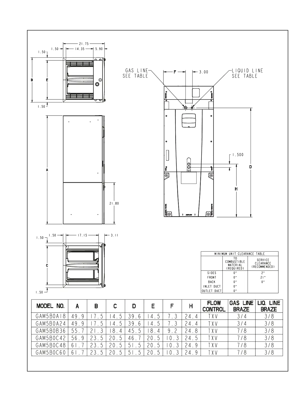 Trane GAM5B0A18M11EB - Section 20. Unit Outline Drawing