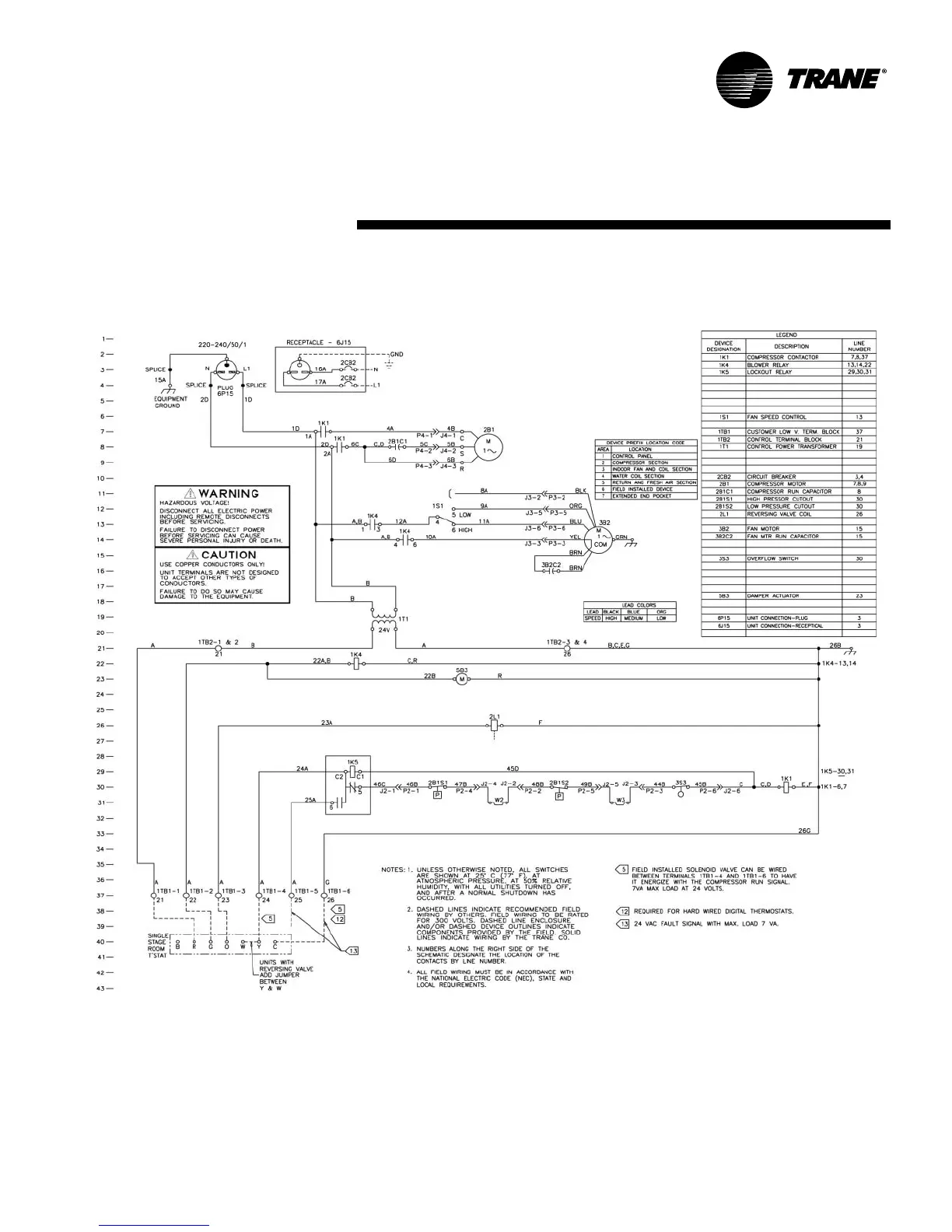 Trane GECA -006 - 220-240 V;50 HZ;1 PH Wiring Diagram