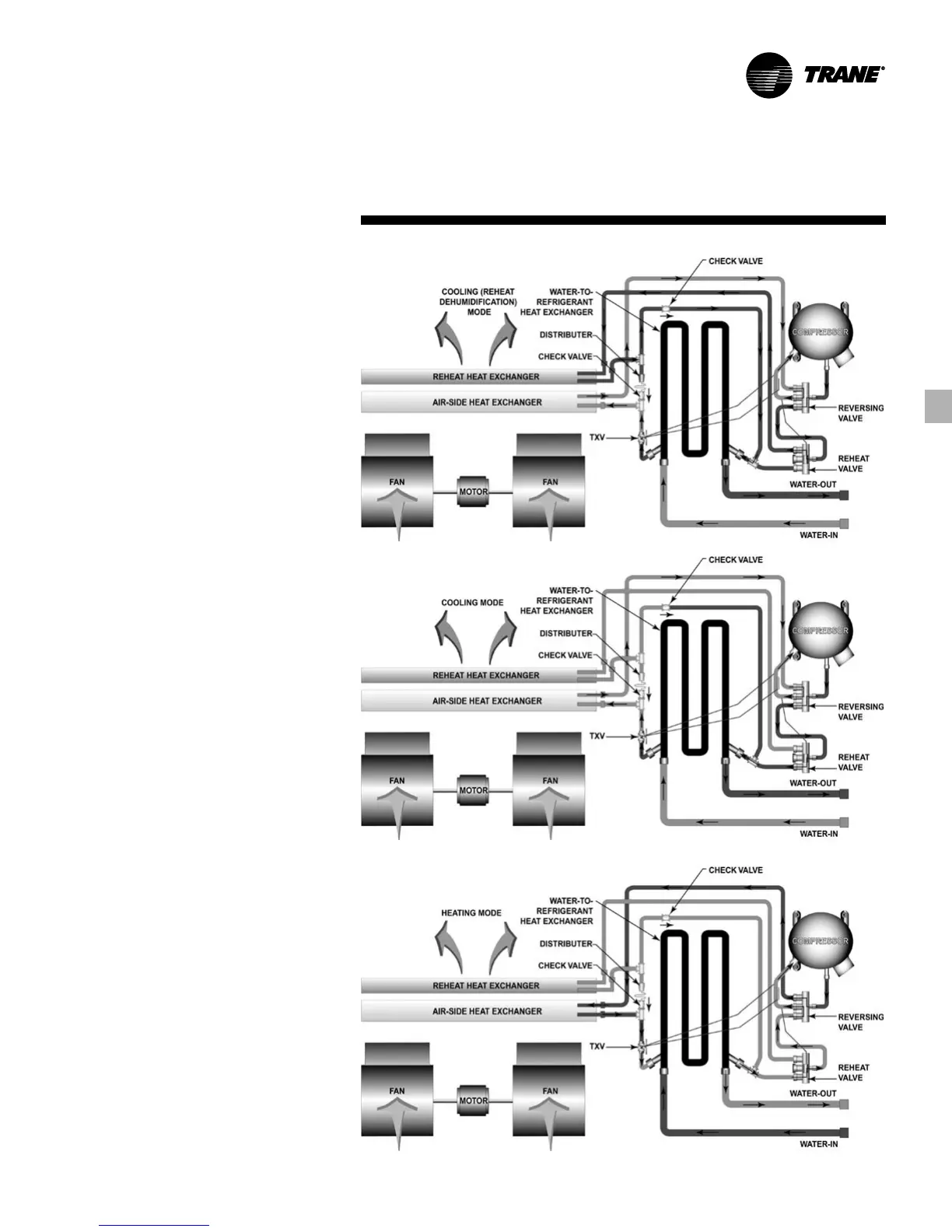 Figure FB-26 – Heating Mode for Console Unit Piped With Hot Gas Reheat Option