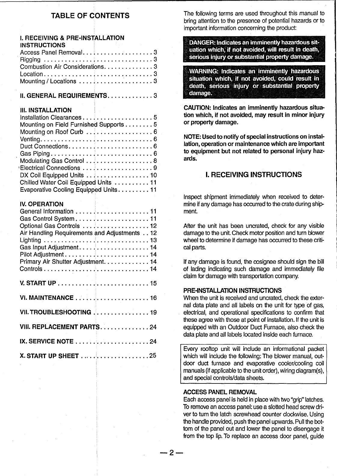 Trane GRAA - Receiving and Installation Preparation; Receiving Instructions; Pre-Installation Instructions