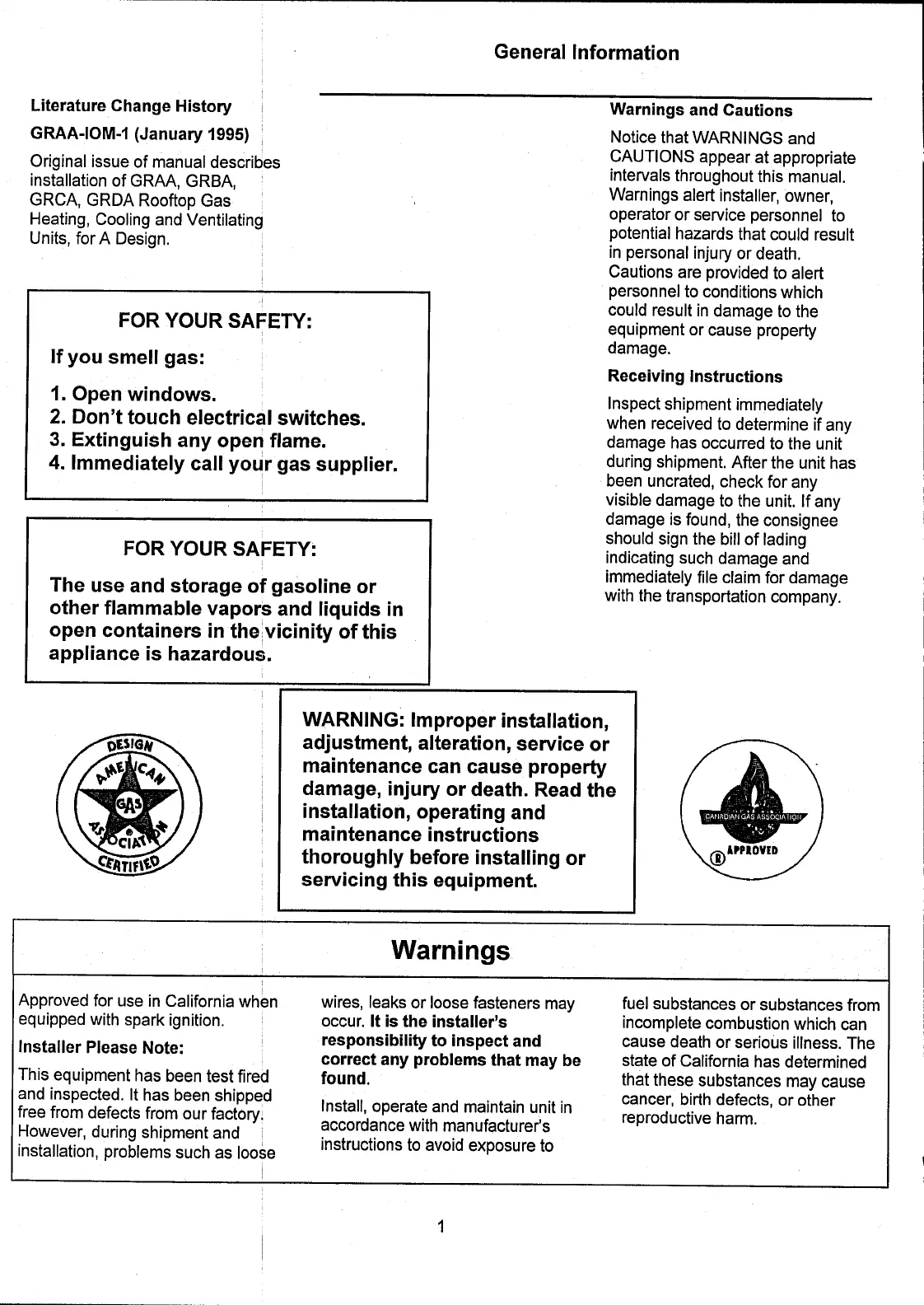 Trane GRBA - Introduction; Warnings, Cautions, and Notices