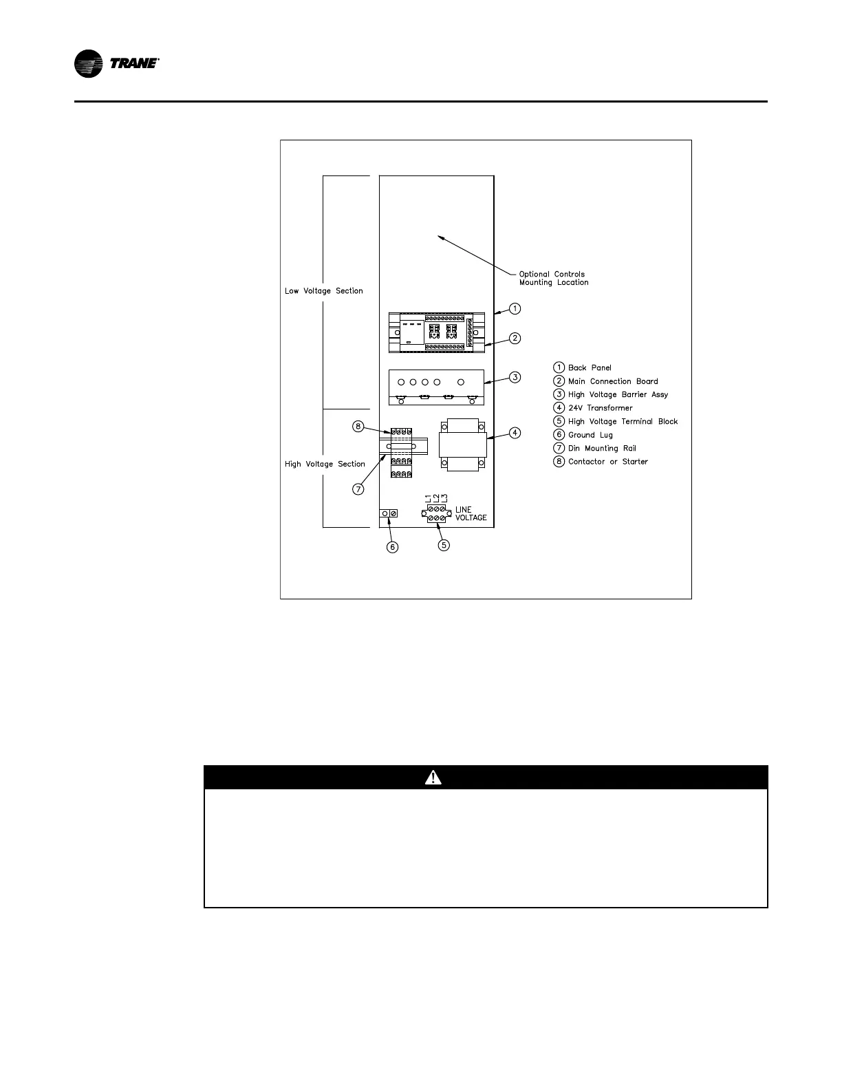 section, the outdoor air hood or the rear of the supply plenum (See Figure 11, p. 27). Electrical
