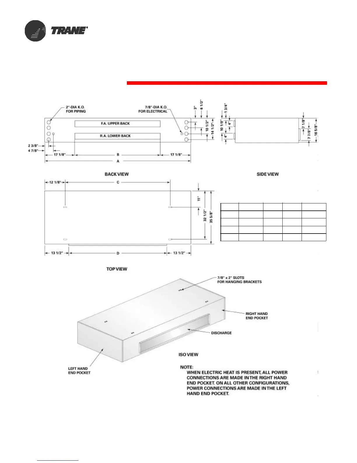 Trane HUV - Dimensional Data HUV-Ducted Front Discharge