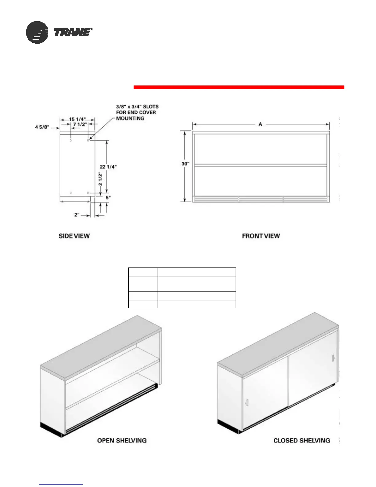 Trane HUV - Dimensional Data Shelving-Open or Closed