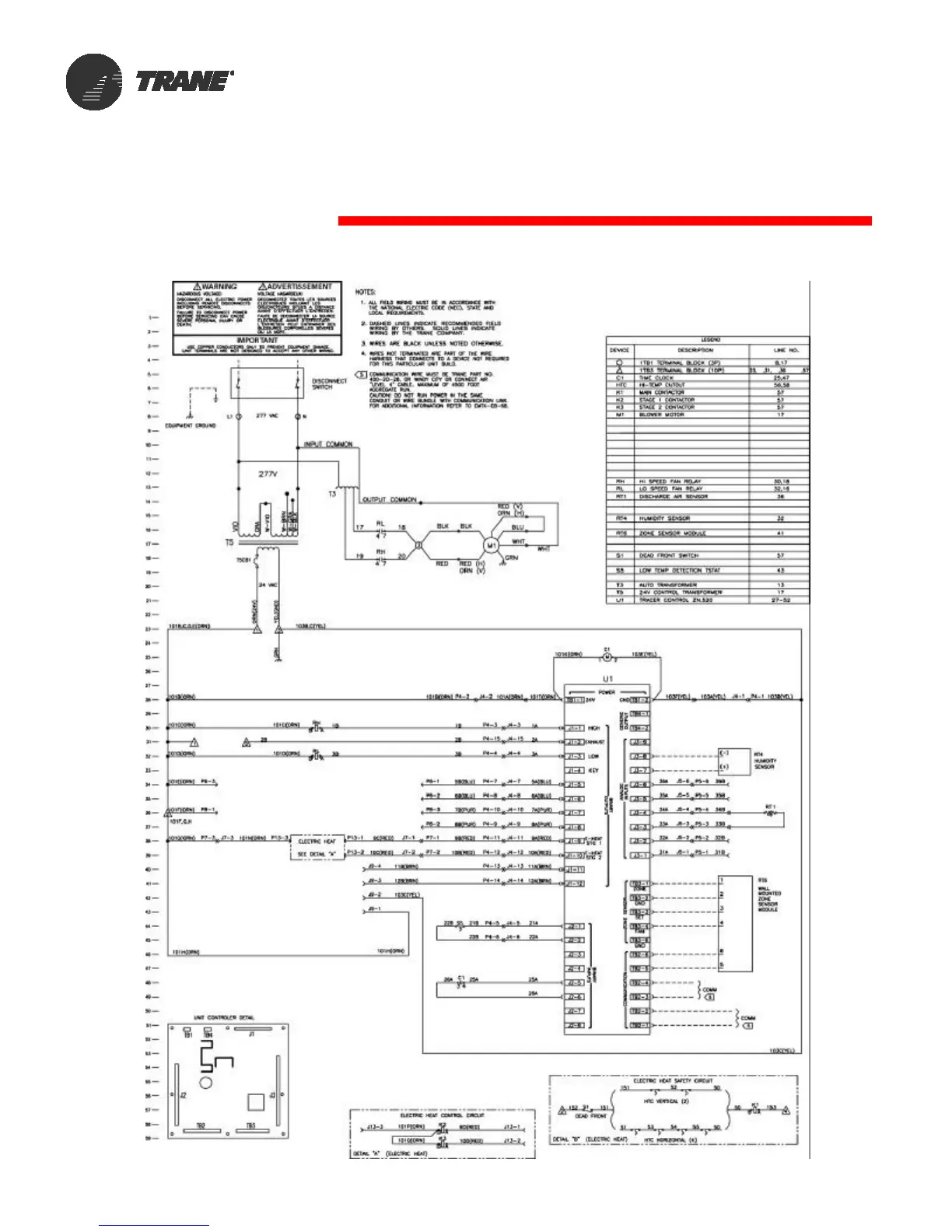 Trane HUV - Control Wiring Tracer ZN520 w;E-heat