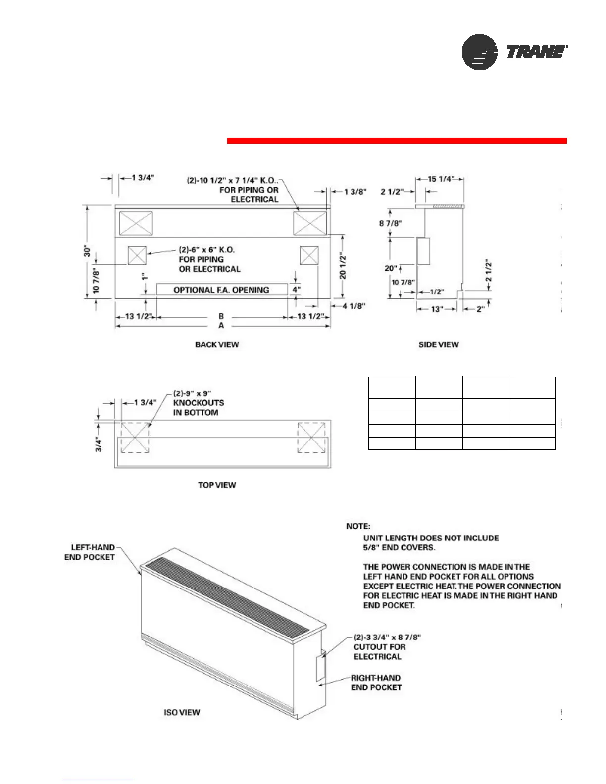 Trane HUV - Dimensional Data VUV-15 1;4 Depth