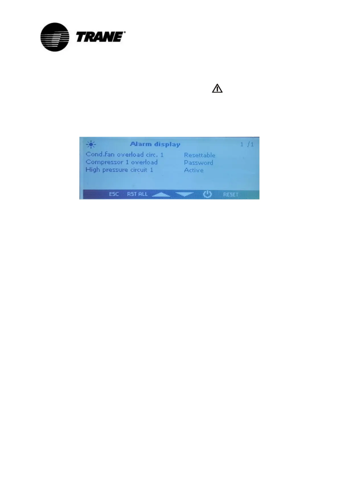 When any type of fault or error on the unit occurs, the alarm symbol flashes on the display and