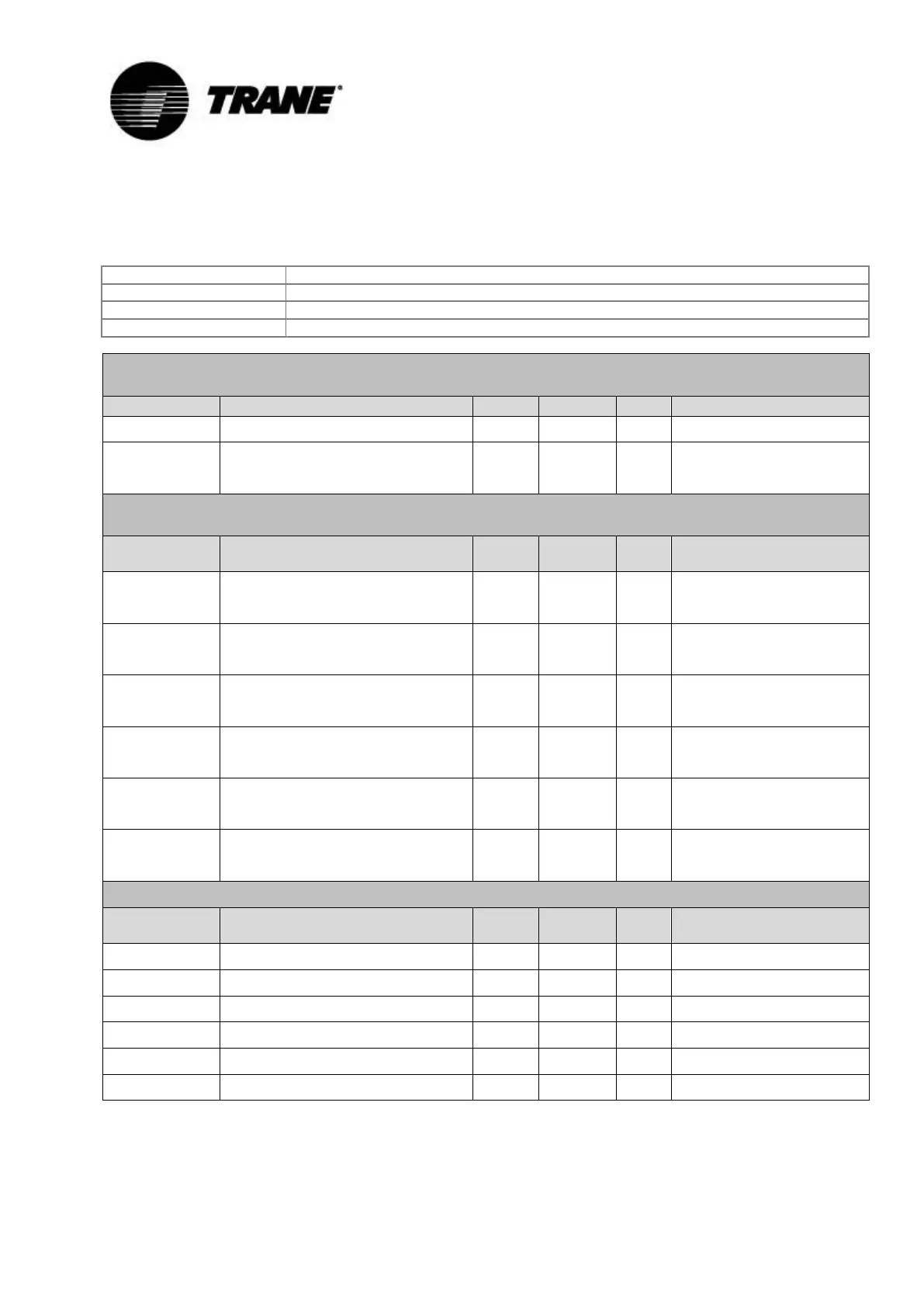 User Parameters Table