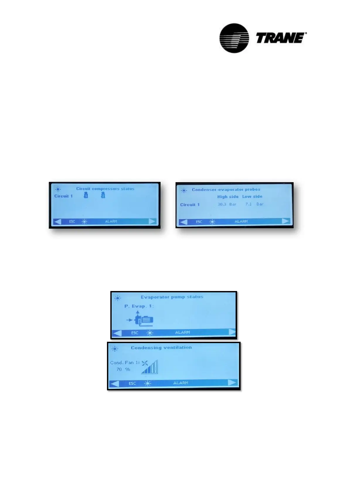 In these screens, you can see, at first, the state of all the compressors, with the status indication of