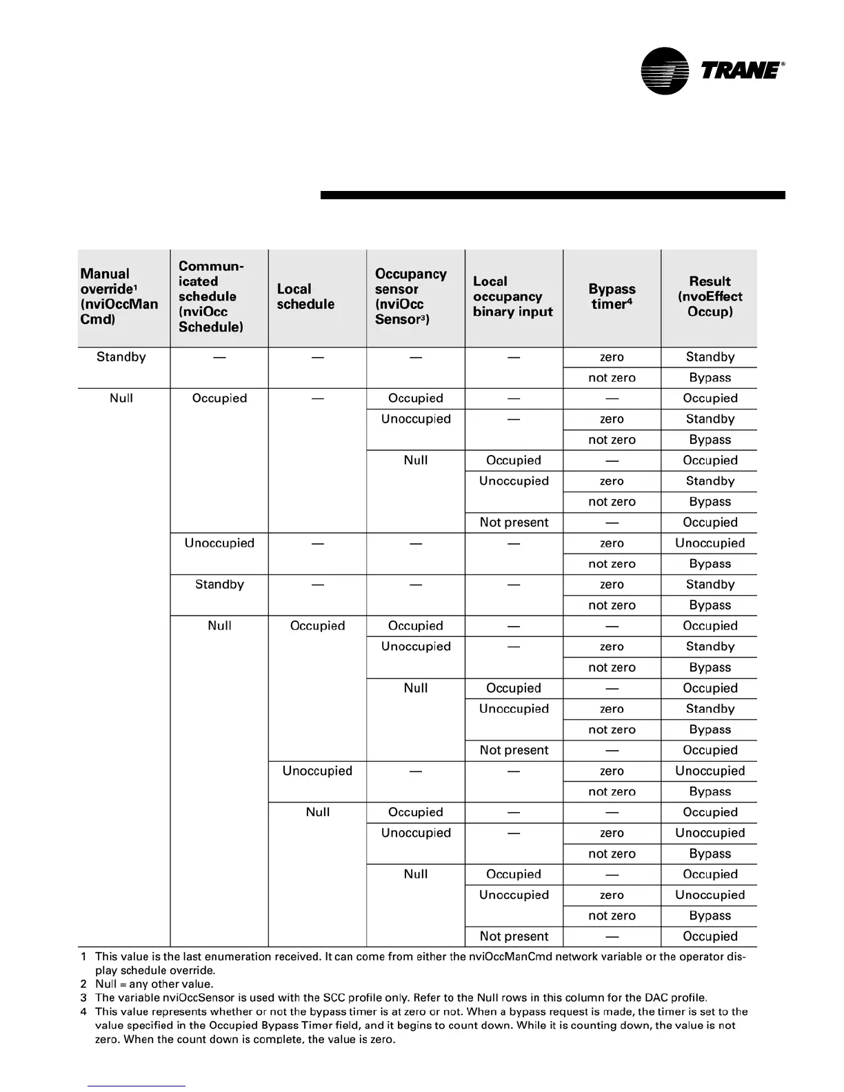 continued Table O-SO-6 Effective occupancy arbitration for Tracer AH540/541 with operator display