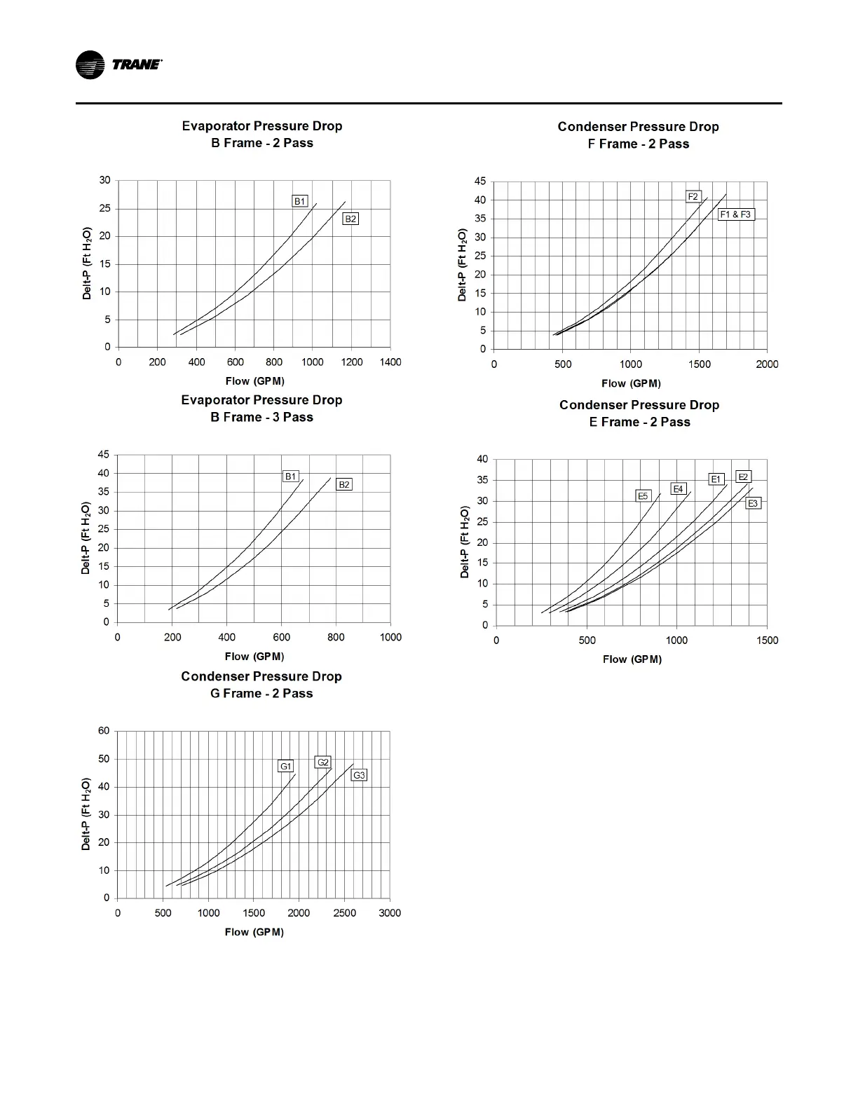 Trane Optimus RTHD - Evaporator and Condenser Pressure Drop Charts