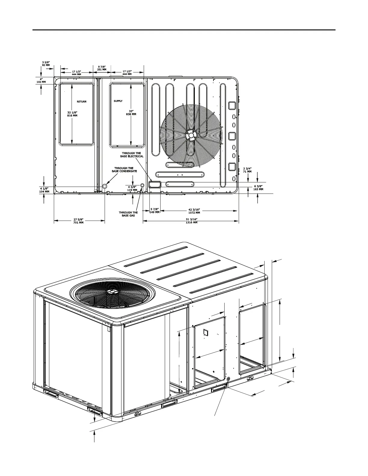 Figure 10. 12.5 tons high efficiency downflow airflow supply/return, through-the-base utilities
