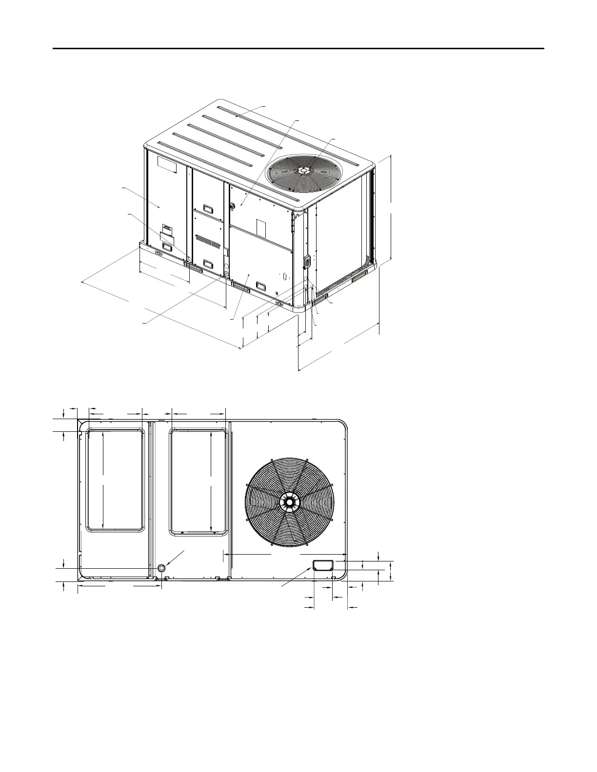 Figure 11. B.0 cabinet downflow airflow supply/return, through-the-base utilities
