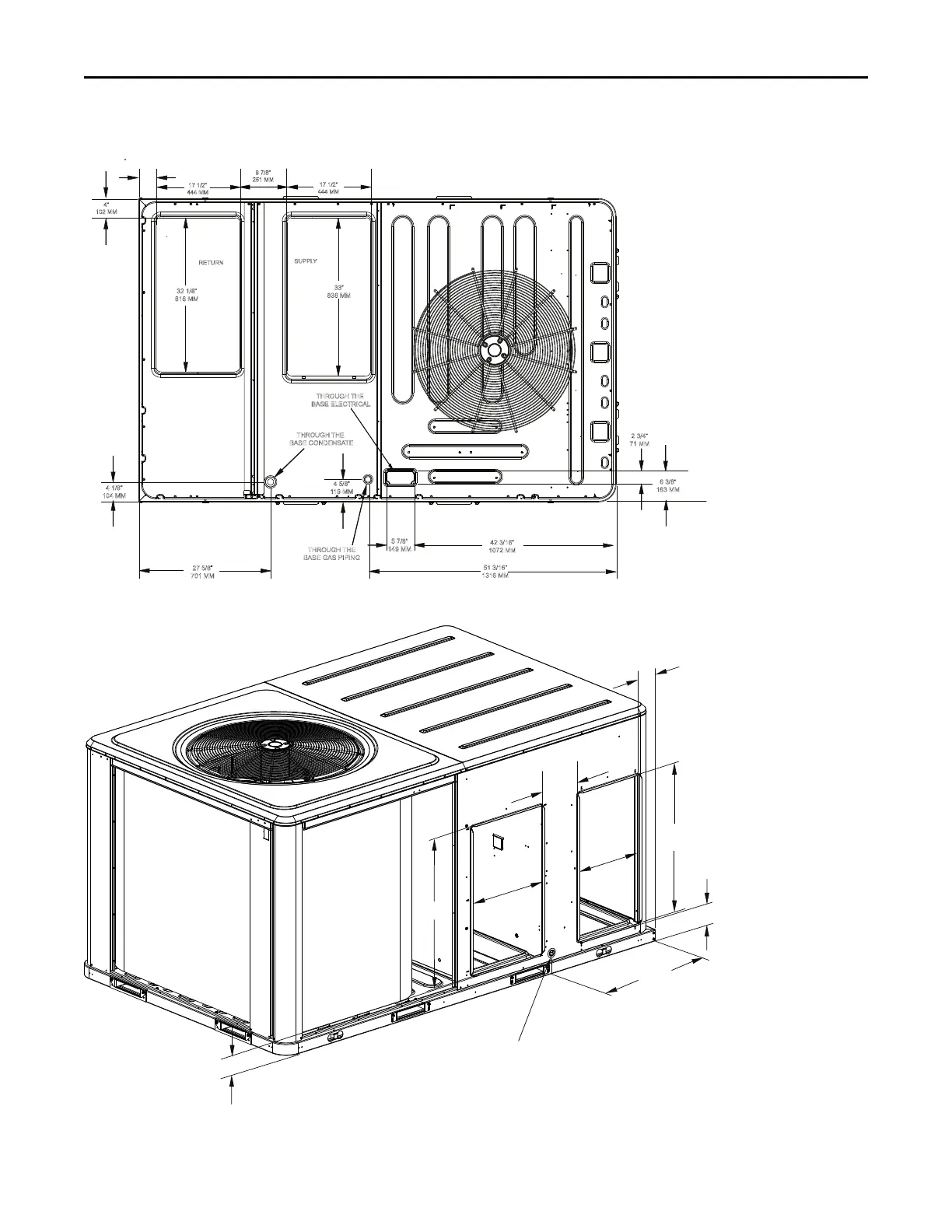 Figure 18. C.0 cabinet downflow airflow supply/return, through-the-base utilities