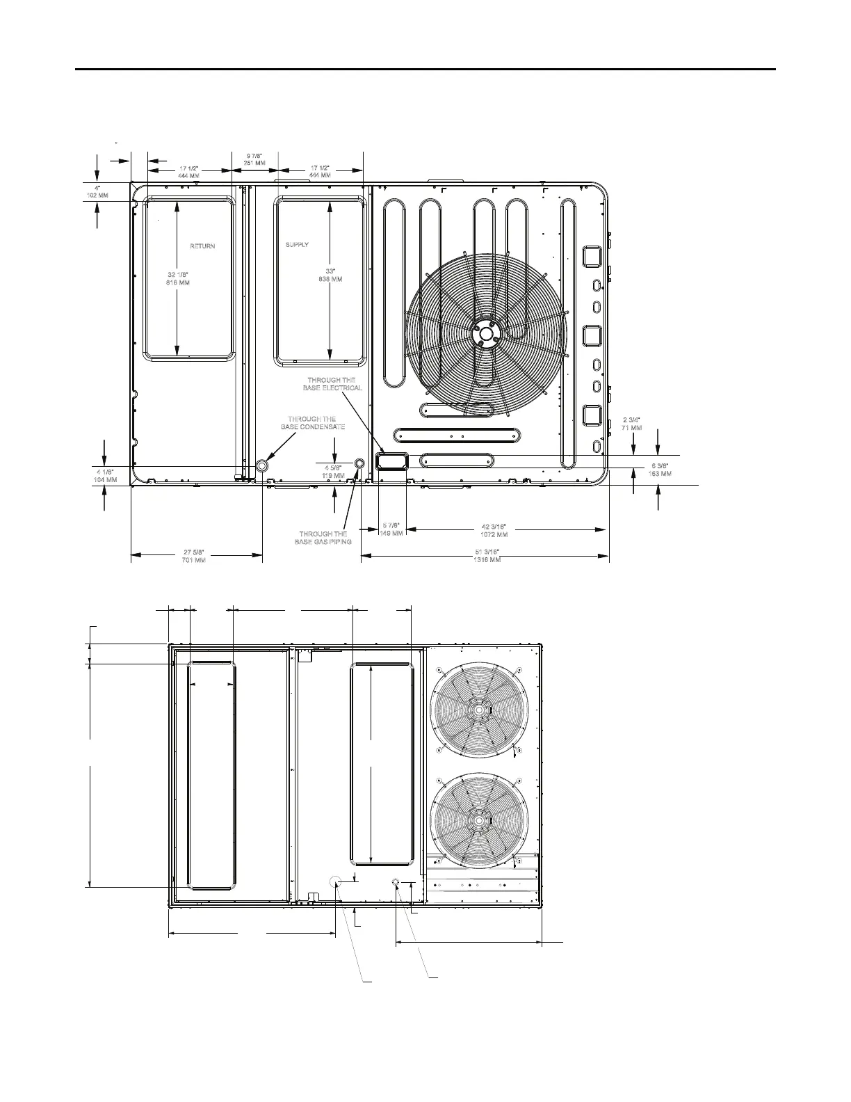 Figure 45. D.0 and D.1 cabinets downflow airflow supply/return, through-the-base utilities