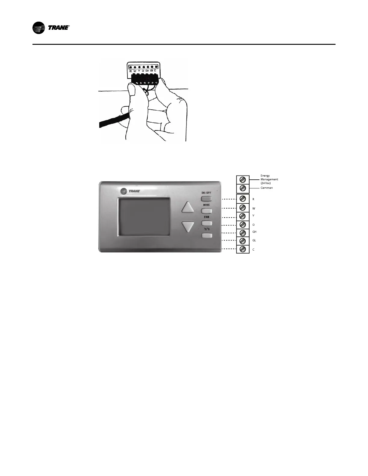 4. Connect wires from the thermostat to terminals on unit terminal connector.