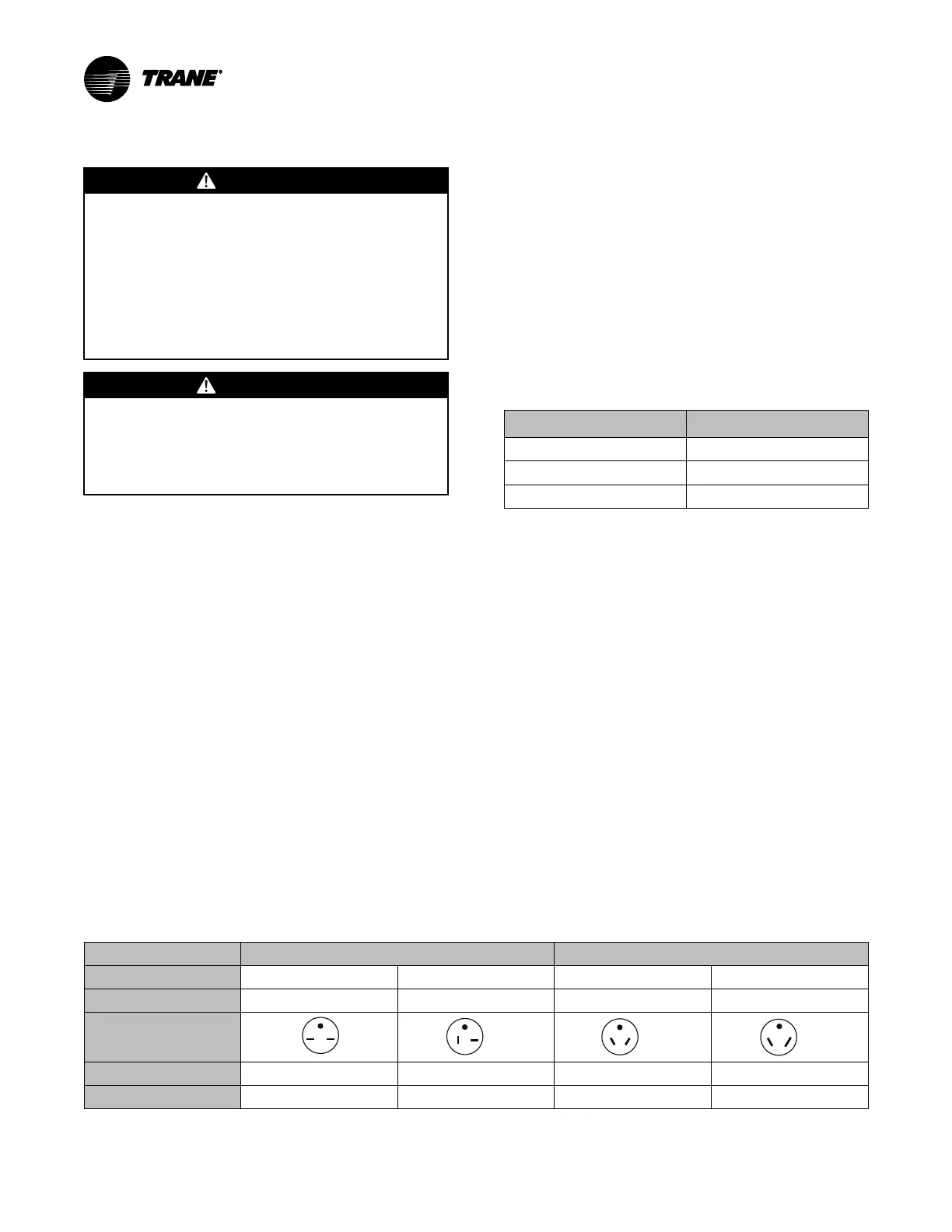 The 250 Vac field supplied outlet must match the plug for standard 208/230V units and be within reach of the service cord.