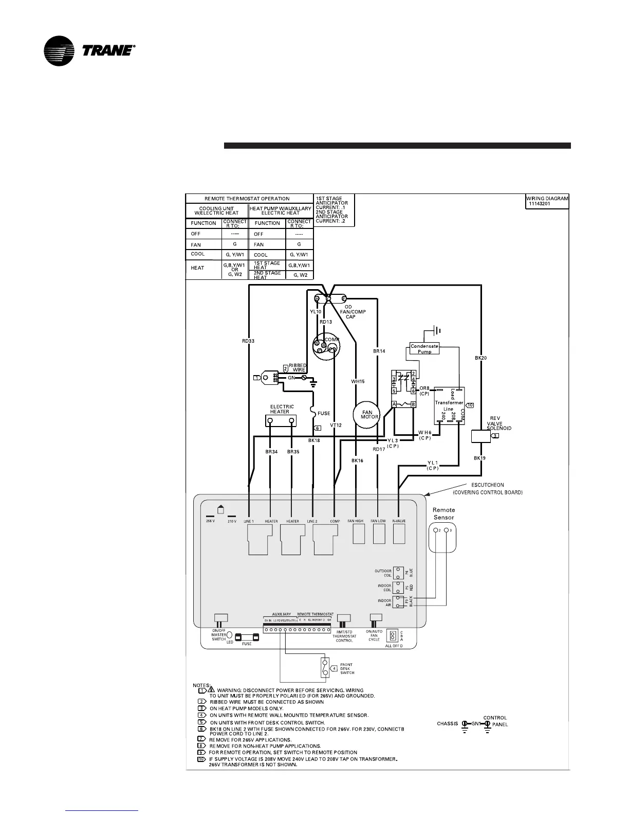 Trane PTEC-120 - Condensate Pump and Power Vent Schematics